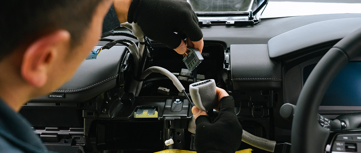ドラレコやカメラ、ナビ、ETC、スピーカーなど様々なカー用品の取り付けを行います。お客様ごとに異なる車種とカー用品の組み合わせでの施工のため、常に新鮮な気持ちで業務に取り組むことができます。